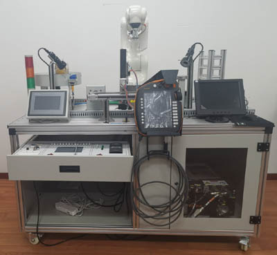 包含六自由度工業機器人、智能視覺檢測系統、PLC控制系統及一套供料、輸送、裝配、倉儲機構,可以實現對工件分揀、檢測、搬運、裝配、存儲等操作。