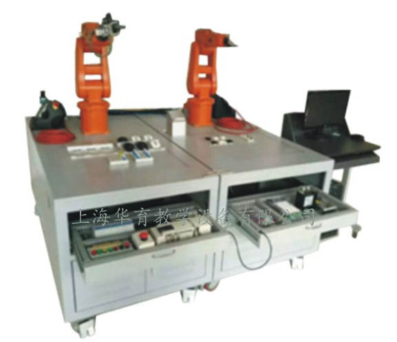 HYRGZ-1工業機器人裝配模擬系統工作站實訓裝置產品以實際生產應用為載體,能夠模擬工業現場,主要由六自由度ABB機器人、裝配工裝夾具、元器件存放區、裝配工作區、電氣控制柜、型材實訓桌、型材電腦桌和氣泵等組成。通過開展項目實訓掌握機器人應用系統的搭建,掌握機器人的應用、編程及維護,了解掌握常見機器人輔助夾具的裝配應用。本產品涉及可編程技術、機器人技術、自動化技術、傳感器技術等實現機器人的搬運、定位、加緊等典型的工業運用。配有兩臺機器人協助運行,可單獨運行工作,也可配合同時工作,增加了實驗臺的靈活性,方便進一步擴展和升級。通過實踐使學生掌握機器人