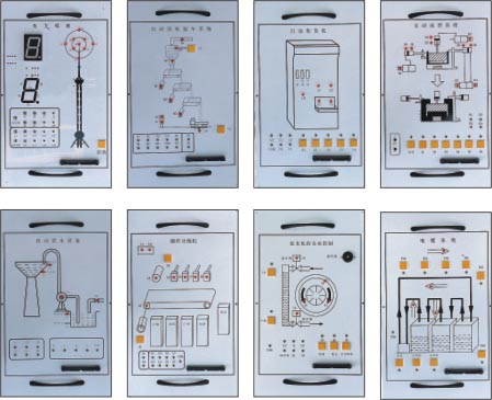 配合 PLC 可編程控制器實(shí)驗(yàn)臺(tái)使用而設(shè)計(jì)的外接演示裝置。它由 LED 發(fā)光二極管、大型 LED 數(shù)碼管、直流電機(jī)、步進(jìn)電機(jī)等執(zhí)行機(jī)構(gòu)用其他外圍電路模擬實(shí)際工業(yè)控制過程中的狀態(tài),它形象生動(dòng)的演示了 PLC 的整個(gè)執(zhí)行過程。通過該裝置,可以鍛煉學(xué)生的動(dòng)手能力,能夠形象生動(dòng)的執(zhí)行機(jī)構(gòu)驗(yàn)證自己編寫程序的正確性,掌握 PLC 的實(shí)際應(yīng)用,增強(qiáng)學(xué)生對(duì) PLC 的學(xué)習(xí)興趣。該裝置在演示屏上位置可任意移動(dòng)、互換。