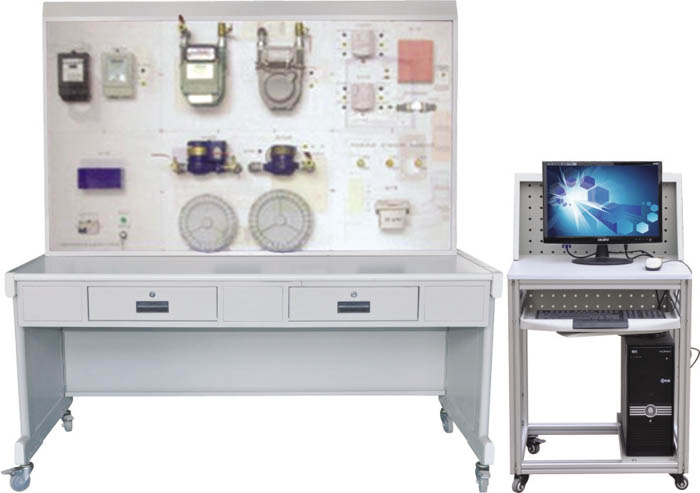 本系統全部采用實物,整個實訓裝置主要由采集器、集中器、遠傳水表、遠傳電表、遠傳氣表、遠程抄表系統管理軟件、發卡器、發卡箱、IC卡、預付費水表、預付費電表、預付費氣表、預付費三表系統管理軟件、仿真模擬三表消費系統、專用管理電腦等組成。